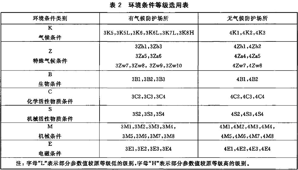 3.6 各種防護類型產品可選用的環境條件等級見表2 ,產品應選擇能滿足使用要求的最低嚴酷程度的環境條件等級。