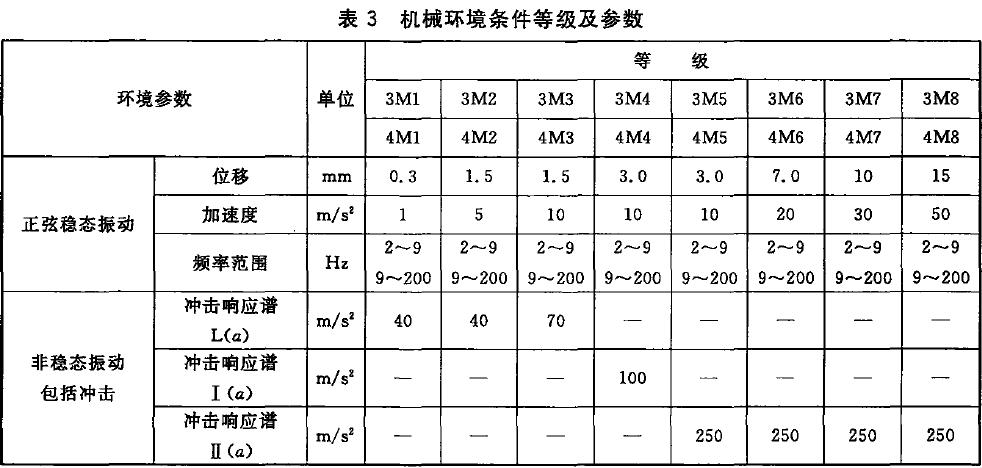 3.9 機械環境條件各等級的環境參數值間表3 。典型沖擊響應頻譜見圖1.